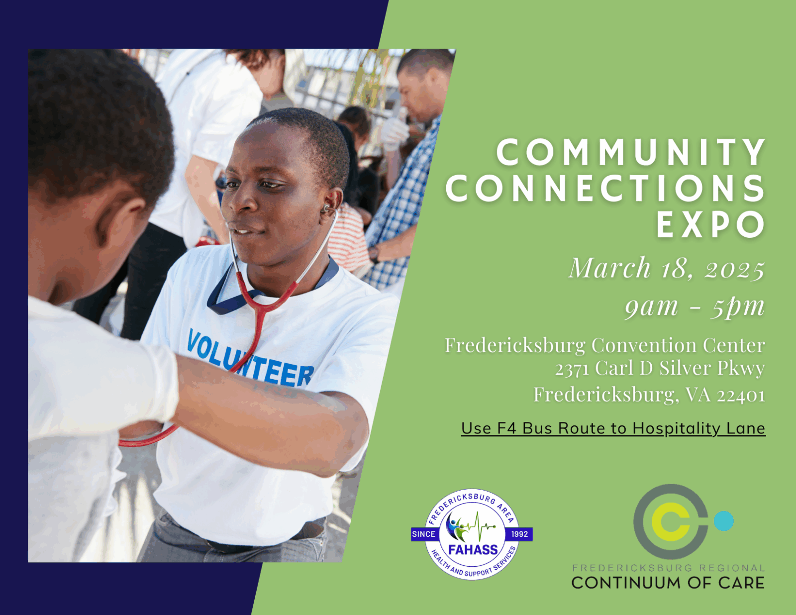 Fredericksburg, VA, February 11, 2025 – Following the success of its inaugural year, the Community Connections Expo returns on March 18, 2025, from 9 AM to 5 PM at the Fredericksburg Convention Center. Hosted by local health nonprofit FAHASS (Fredericksburg Area Health and Support Services) in partnership with the Fredericksburg Regional Continuum of Care, this impactful event aims to connect local families, individuals experiencing homelessness, and those within the ALICE population (Asset Limited, Income Constrained, Employed) with vital resources and services.