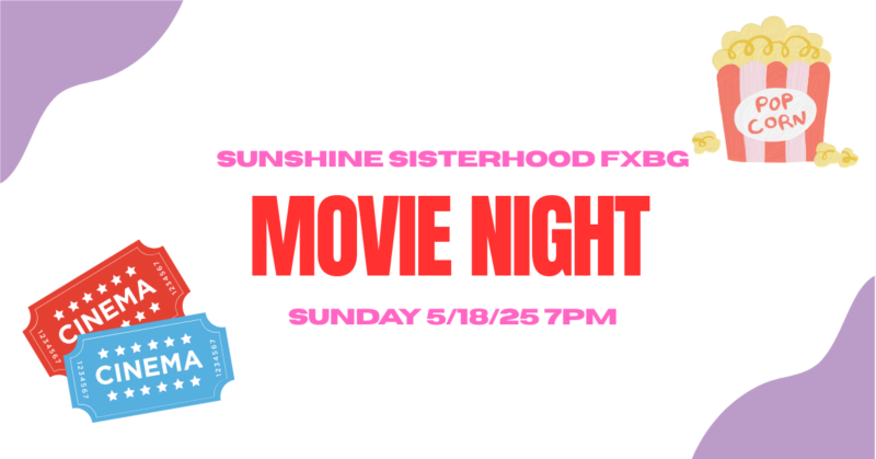 Movie night at the Pride Center for the Sunshine Sisterhood FXBG Sunshine Sisterhood is a group for women of all ages in Fredericksburg and the surrounding areas. We are looking to meet friends, empower one another and build meaningful relationships. This group is all inclusive and open to all people who identify as a woman.